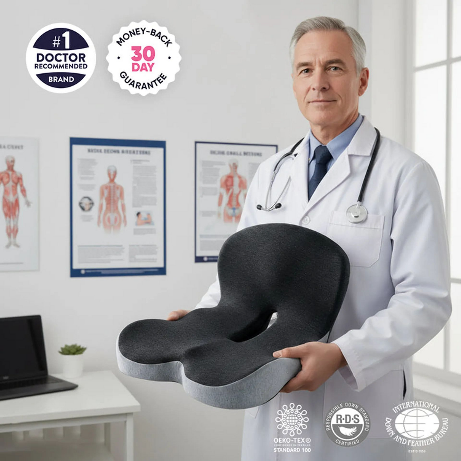 With input from orthopedic experts and months of ergonomic testing, the Relivoza™ Cushion was designed to relieve the most frequent pain issues caused by long sitting from tailbone pressure to lower back and hip discomfort.